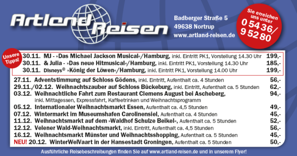Unsere heiß begehrten Musical- und Reisegutscheine. Ein ideales Geschenk das man nie vergisst.